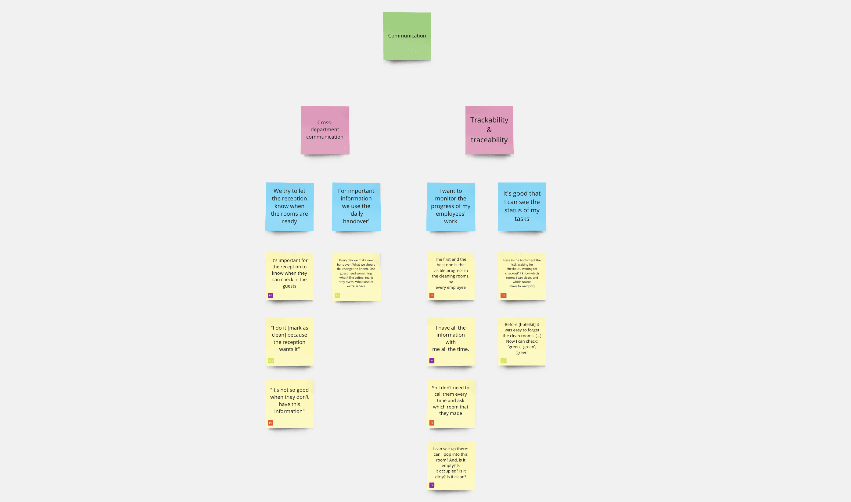 Aside from solving for the main needs of housekeepers and hotels, the research also uncovered areas that were not catered for in hotelkit's housekeeping solution at that time: 1) preparation of the cleaning work, and 2) monitoring progress and success. By adding a dashboard with vital stats about the cleaning tasks and cleaning progress, the housekeepers are now in full control of their work day. By suggesting this addition to the housekeeping solution, I provided the company with a promising new product offer to include in the ongoing product and business strategy.